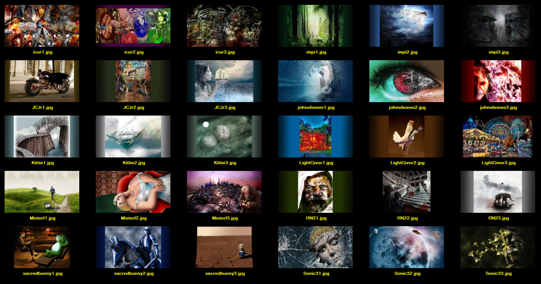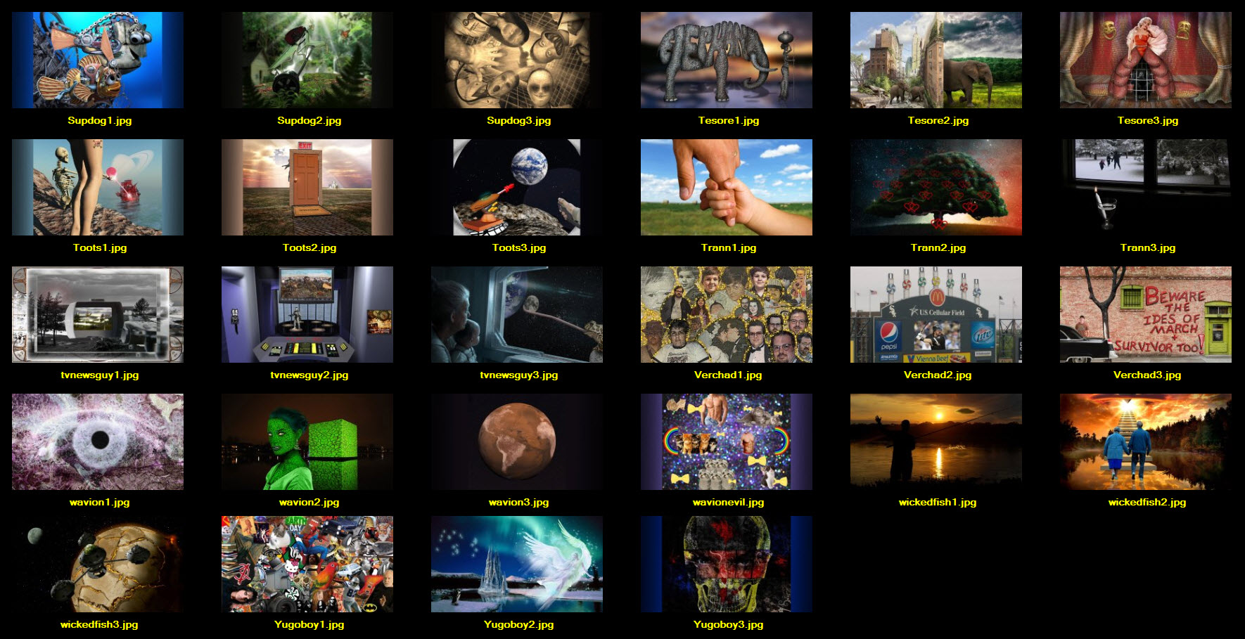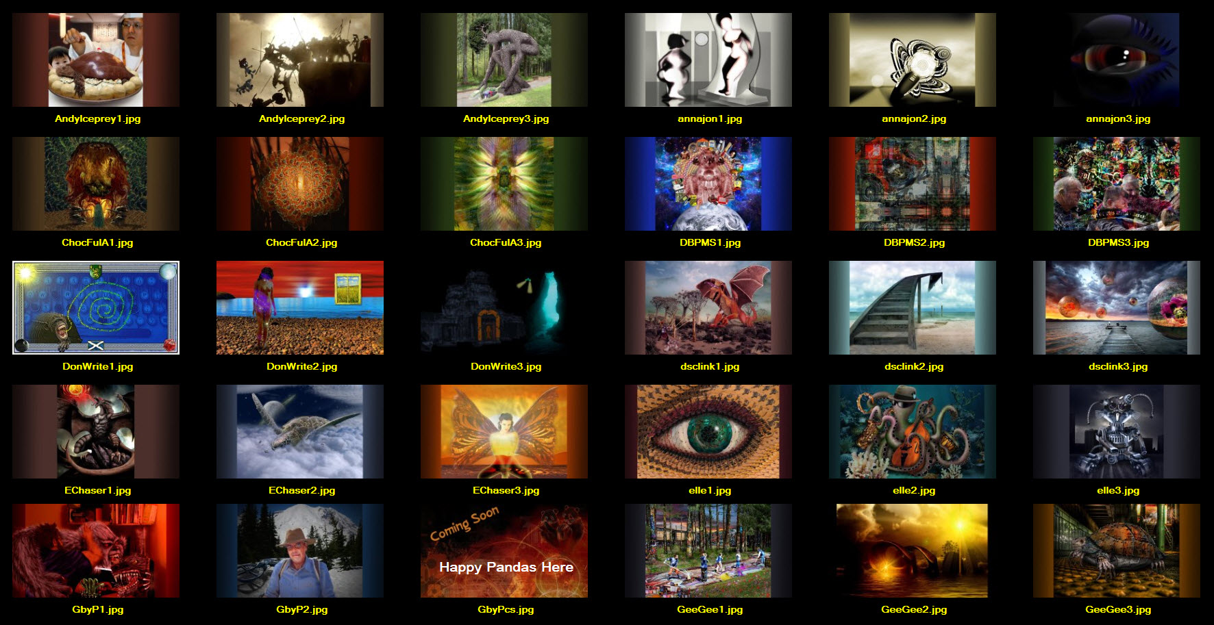 Please try not to focus on the border colors but rather the primary color(s) of the image because in theory, in the video, you won't see those solid borders but rather "in-betweens" images that link adjoining pics so it looks like a continuous scroll. Those who worked on multiple panels of an exquisite corpse will understand - or just look at the PSC video in the Project Summary.